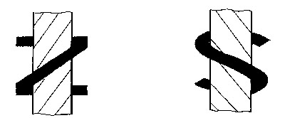鍍鋅鋼絞線捻距應不大于其直徑的14倍,其他倍數的捻距應在合同中注明。鋼絞線外層捻向為右捻,外層鋼絲的捻向應與相鄰內層鋼絲的捻向相反(見下圖),如需改變捻向應在合同中注明。